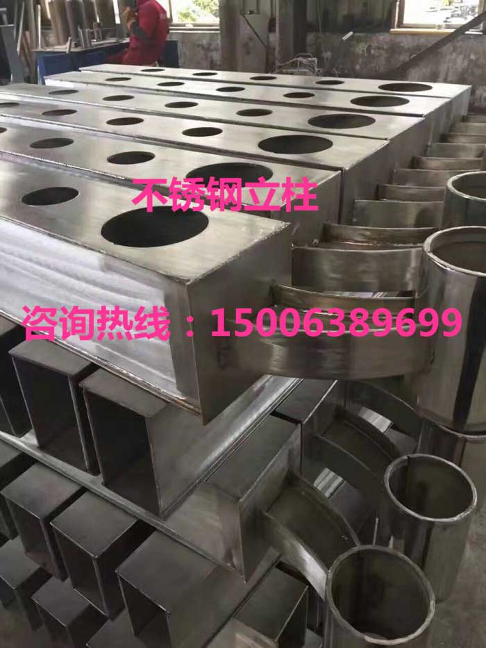 山東龍哲金屬制品有限公司有大型數(shù)控異形切割機、離子切割機、沖床、鍍鋅、噴塑車間專業(yè)生產(chǎn)不銹鋼復(fù)合管護欄用護欄立柱,護欄鋼板立柱、各樣式護欄鋼板立柱,鍍鋅噴塑護欄立柱,各種異形鋼板切割和鋼板加工等。 護欄鋼板立柱主要原料材質(zhì)有Q系列鋼板(Q195-235)和不銹鋼鋼板,經(jīng)過鍍鋅噴塑處理,使鋼板耐酸耐堿耐腐蝕、日曬雨淋不生銹,不脫層、經(jīng)久耐用、豪華美觀豪、質(zhì)堅、價廉等一系列突出優(yōu)點,使表面光滑明亮達到美觀的效果!立柱和我們的不銹鋼復(fù)合管組合制作的護欄也成為時尚主流,大多旅游景點已經(jīng)逐步在更換這種產(chǎn)品!其特點美觀,耐腐蝕,成本比純不銹鋼便宜很多!一座城市的繁華程度衡量的標準之一。不銹鋼復(fù)合管與鍍鋅噴塑護欄鋼板立柱配合,做成橋梁/河道護欄、市政建設(shè)、城市護欄、道路護欄、人行扶手和各種金屬景觀護欄,不僅牢固、大方,且可造型各異,給都市一種亮麗風景