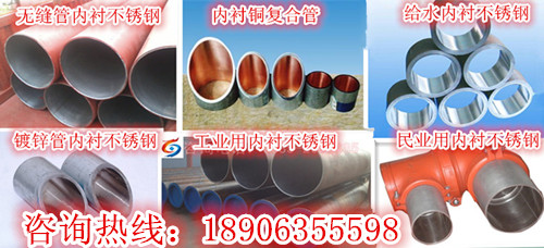 不銹鋼復(fù)合管由不銹鋼(不銹鋼316L、316、304、201、430和耐腐蝕合金管、銅基合金、鎳基合金、哈氏合金、鈦、鈦合金、雙相不銹鋼)和碳素結(jié)構(gòu)鋼(Q195-235焊管,螺旋管、無縫管、鍍鋅管、合金鋼等碳鋼)兩種金屬材料,采用高科技無膠無損壓力同步復(fù)合技術(shù)、雙螺旋溫滾壓復(fù)合技術(shù)和靜水壓式復(fù)合技術(shù),內(nèi)襯不銹鋼復(fù)合管由于在兼顧了內(nèi)外兩層管材的優(yōu)點(diǎn)的同時(shí)也克服了它們的缺點(diǎn),生產(chǎn)工藝簡潔、生產(chǎn)效率高,不銹鋼與碳鋼完美地合二合一。內(nèi)襯不銹鋼復(fù)合管主要特點(diǎn)、優(yōu)點(diǎn):一、良好的機(jī)械性能。二、超高的結(jié)合強(qiáng)度。三、防銹耐腐蝕性好。四、耐溫性能佳,耐溫范圍-40~150℃,冷熱兩用。五、通徑大、阻力小。六、工作壓力高。七、全金屬結(jié)構(gòu)強(qiáng)度高、衛(wèi)生性能好,符合CJT192-2004標(biāo)準(zhǔn)要求。八、性價(jià)比高。九、安裝便捷,施工工藝簡單。產(chǎn)品特點(diǎn)為:擁有良好的機(jī)械性;耐酸耐堿耐腐蝕性好;復(fù)合結(jié)合強(qiáng)度高;耐熱耐寒,冷熱兩用;工作壓力高;具有良好的加工性能、可彎曲、焊接/法蘭連接、螺紋連接(絲扣連接、溝槽連接(卡箍連接連接)安裝便捷,工藝簡單;衛(wèi)生環(huán)保、安全性好。